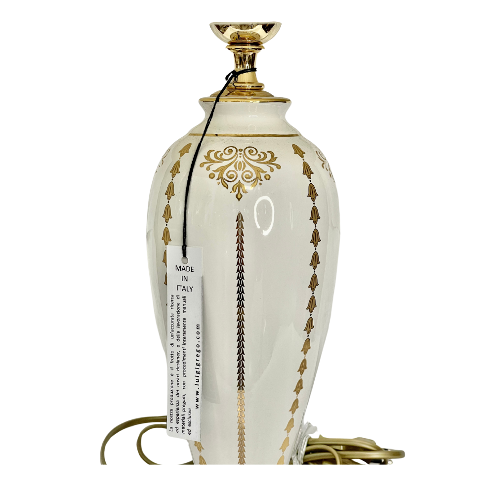 Lampada Luigi Greco bianca in porcellana lavorata in filo oro - rif. 2946
