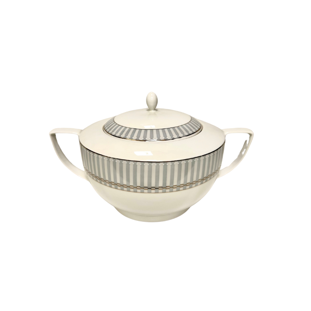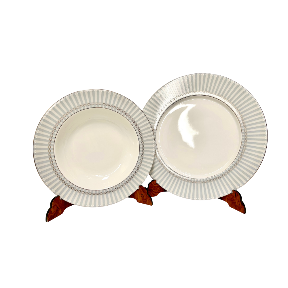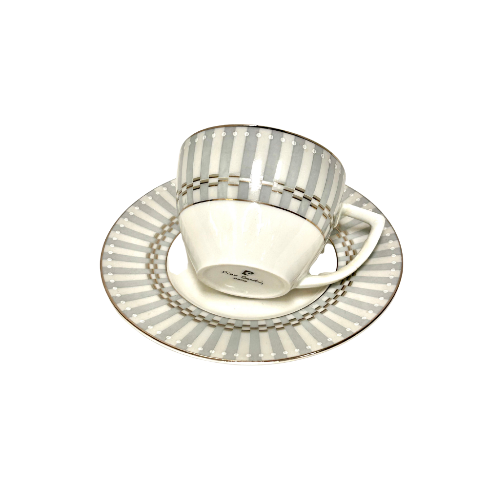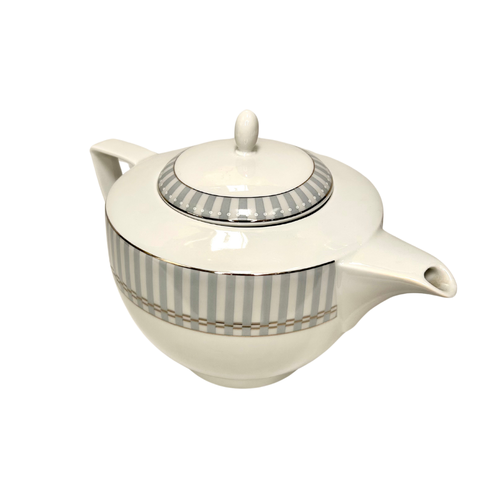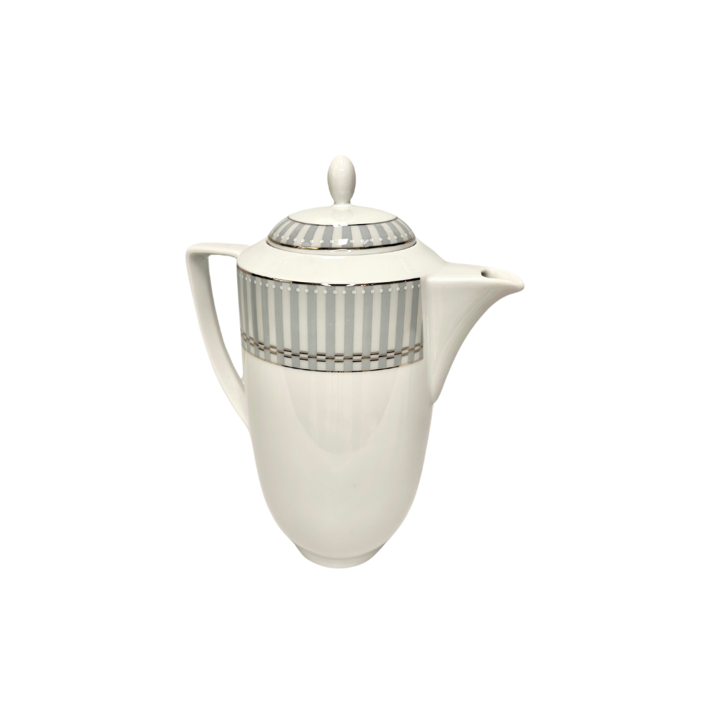 Servizio completo piatti,caffè e tè Pierre Cardin Paris filo argento e ciano - rif. 9322 è un'opera d'arte per la tua tavola. Questo set completo comprende un totale di 95 pezzi, suddivisi come segue: